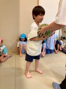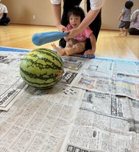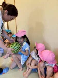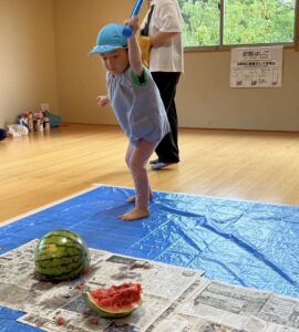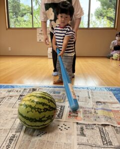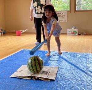 畑のスイカも少しずつ大きくなり、スイカ割りができる日が近づいているかもしれません。