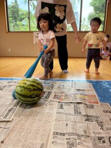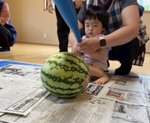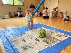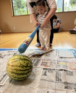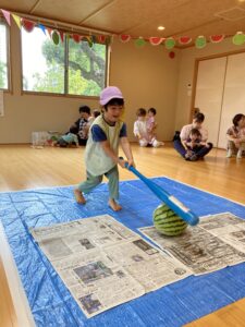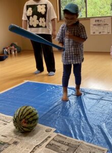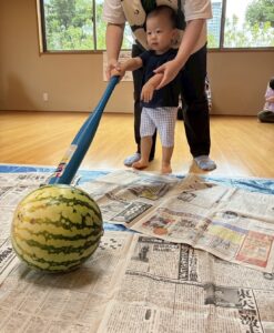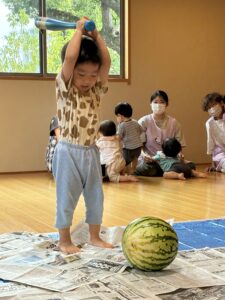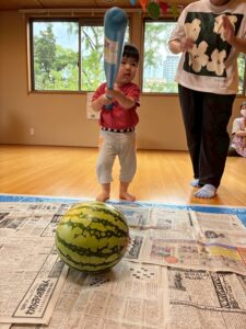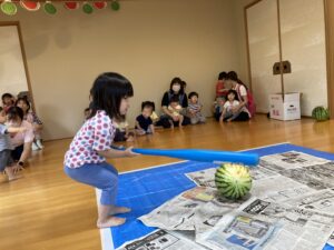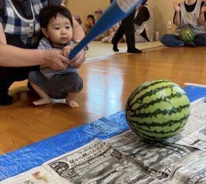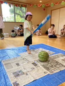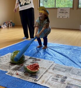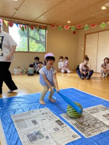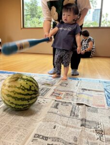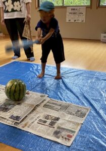 今年もスイカ割をしました。