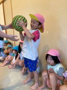 大きなスイカにみんな大興奮。