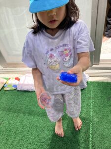 たけぐみで色水を作り氷遊びをしました!!