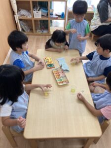 氷を作る前に色水作りからスタート!