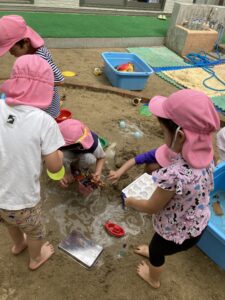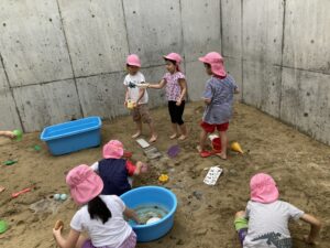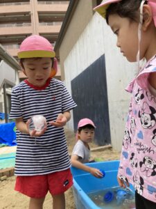 以前作った氷で氷あそび、水あそびをしました🧊