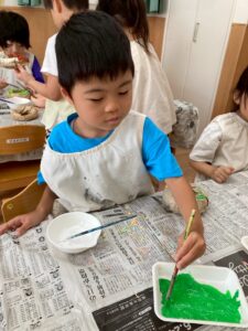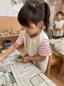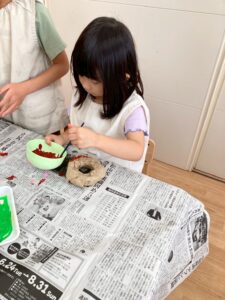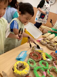 ドーナツはみんなそれぞれ色を塗ったりトッピングをして、完成。