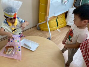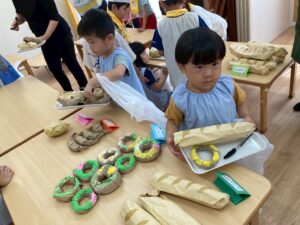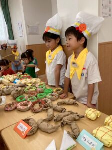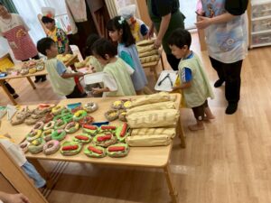 今年もひまわり組さんとパン屋さんを開きました。