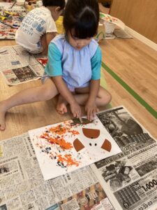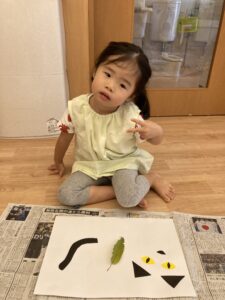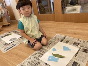昨日散歩に行って拾った🌱葉っぱでスタンプしました☺️