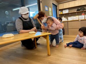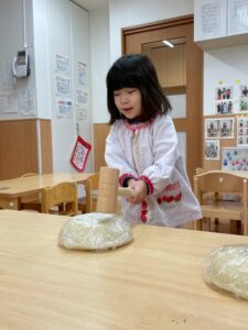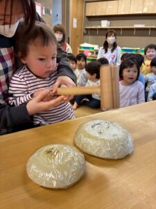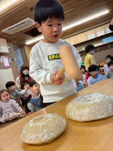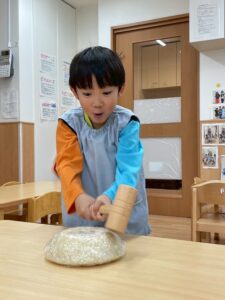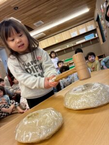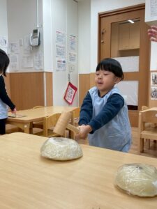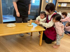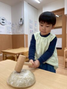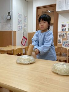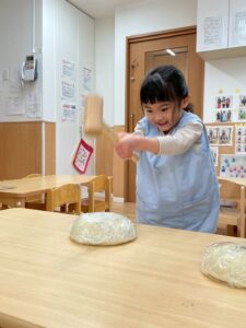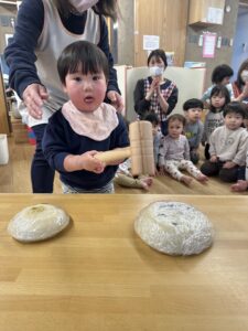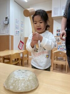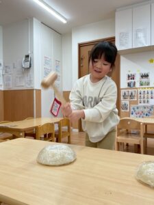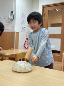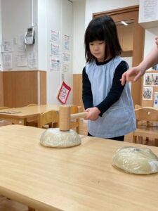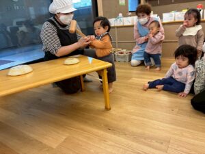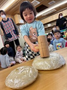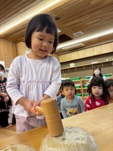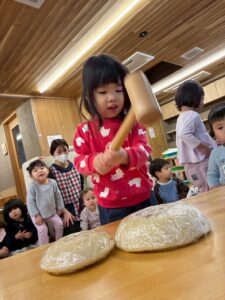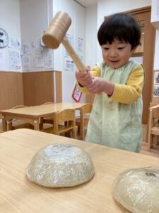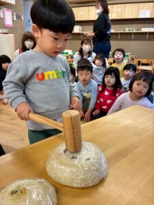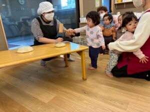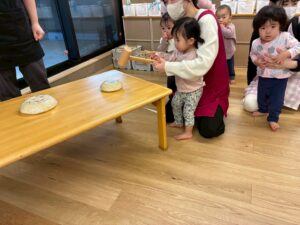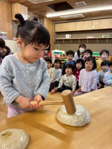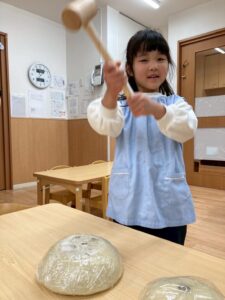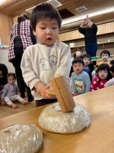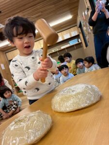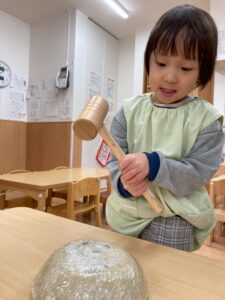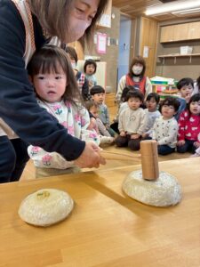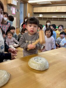 みんなで、元気に大きくなれますようにと願いながら鏡開きを行いました。