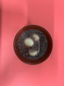 ぜんざいをみんなで食べながら、『これで鬼はこないね、みんなで元気でいられるね』と一緒におやつの時間を楽しみました♪