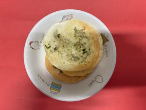 おやつは、じゃこせんべいでした。