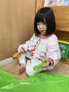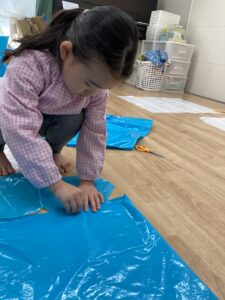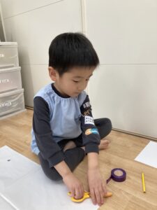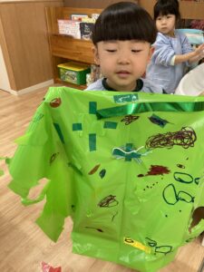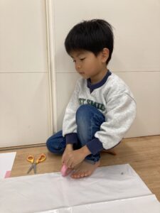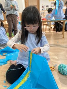 好きな色のカラービニール袋を手に取りお洋服👗、おばけ👻、凧🪁など自分たちの作りたいものを作っていました!