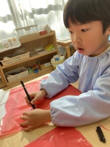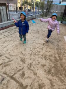 凧揚げを作ったお友だちは、園庭で飛ばして遊びました✨