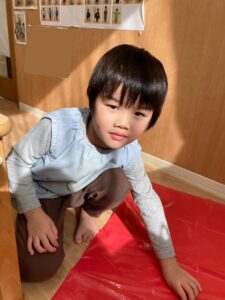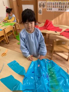 1月の造形でカラービニール遊びをしました!