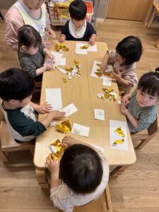 自分たちで折り紙をちぎれるようになってきました!