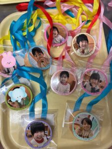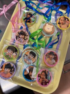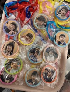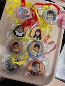 みんなの顔写真をつけたメダルクッキーをつくりました。